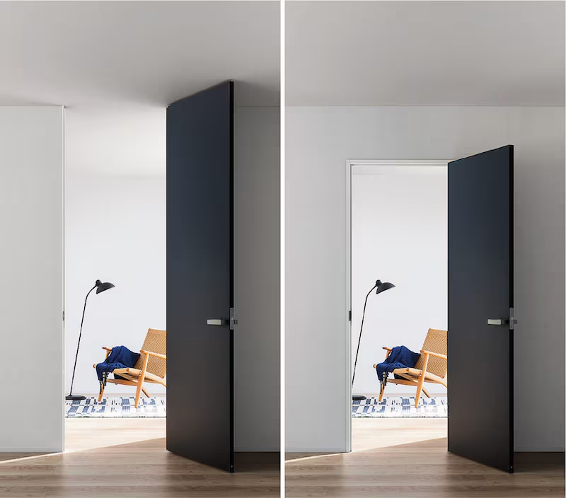 従来の腰壁付きドアと比べて縦のラインが強調され空間がすっきり見えます。