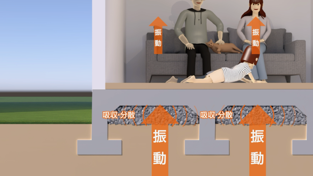 地震の揺れや衝撃を一点で受け止めるのではなく、吸収・分散させる考え方です。